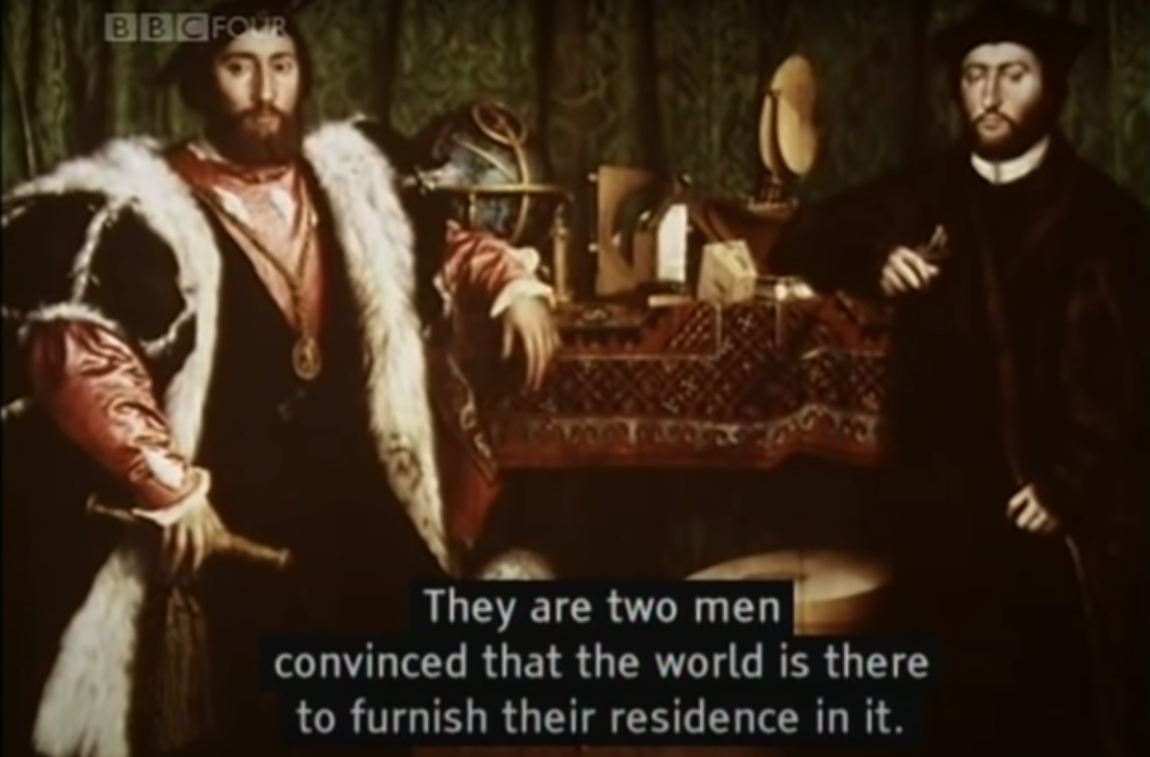 This time around it was a lot different. Watching how the Europeans were incredibly vain and selfish and extravagant reminded me of our current social ideation. The paintings were painted for the primary purpose of showcasing the riches of the subject of the painting. In the image below you can see two men in luxurious clothing and furs. And the background is full of their expensive wordly posessions. This made me think about people today on social media. To some, it is a lifelong project to create this idealized version of yourself online that looks happy, rich, and successful. It is essentially a modern day equivalent of getting an oil painting of yourself.
